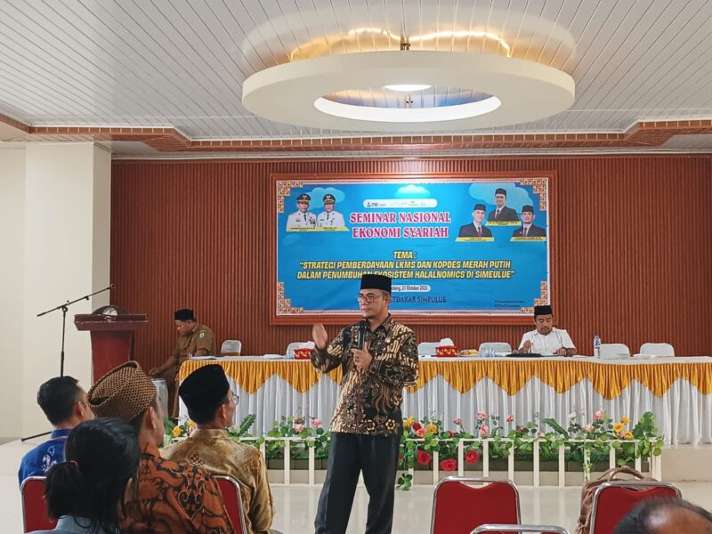 Simeulue Tribune Indonesia.com Jadi pembicara pada kegiatan Seminar Nasional Ekonomi Syariah dengan tema “Strategi Pemberdayaan LKMS dan KOPDES Merah Putih Dalam Penumbuhan Ekosistem Halalnomics di Simeulue” Ketua DPRK Simeulue, Rasmanudin H Rahamin mengajak para pengurus Koperasi Desa memanfaatkan potensi Pariwisata Kabupaten Simeulue untuk pengembangan usaha.