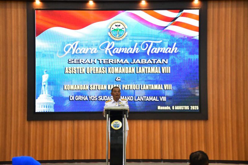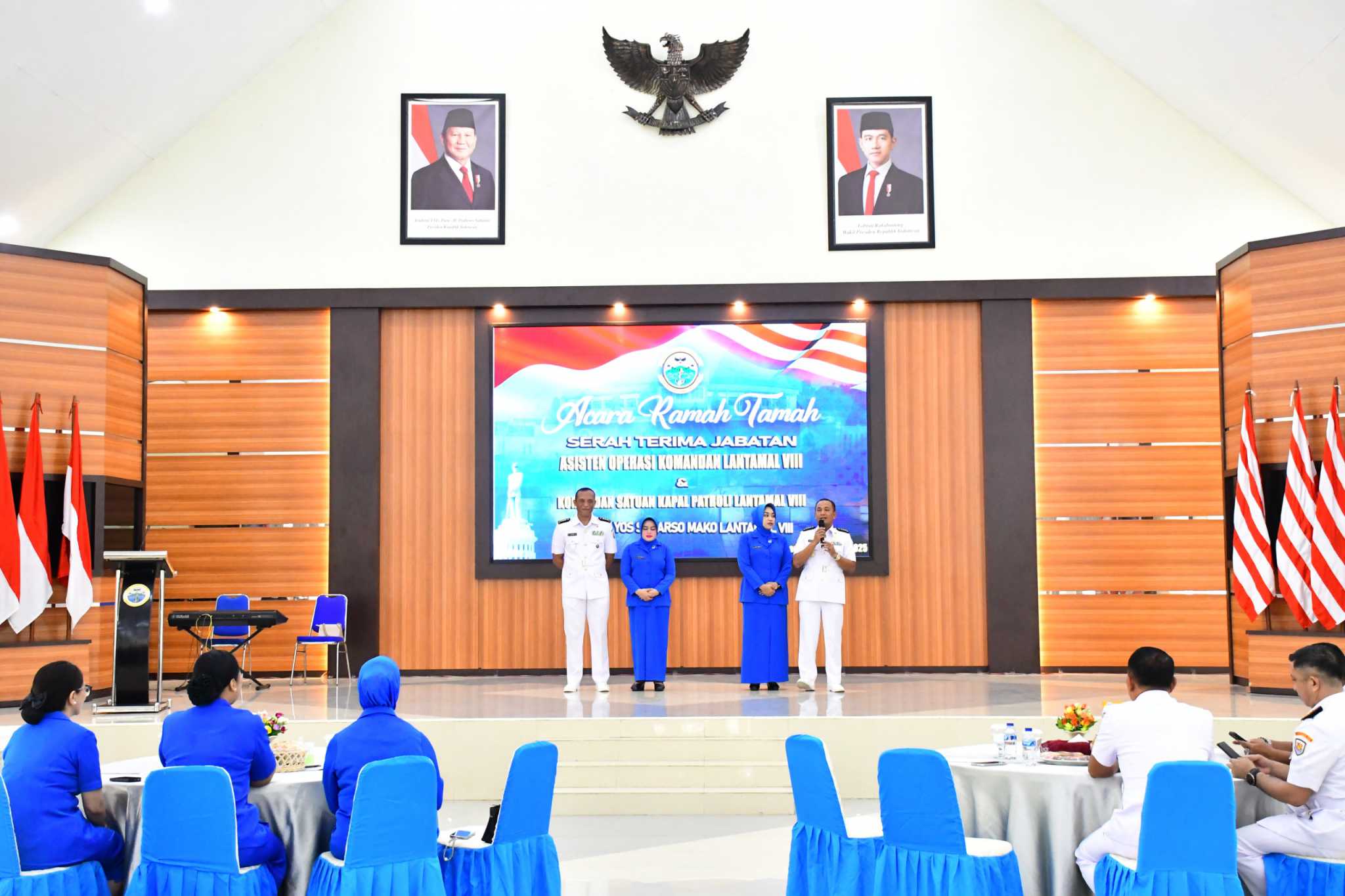 Laksamana Pertama TNI May Franky Pasuna Sihombing, CHRMP., selaku Komandan Pangkalan Utama TNI Angkatan Laut (Danlantamal) VIII, memimpin acara ramah tamah serah terima jabatan (Sertijab) Asisten Operasi (Asops) dan Komandan Satuan Kapal Patroli (Dansatrol) Lantamal VIII. Kegiatan berlangsung di Grha Yos Sudarso Mako Lantamal VIII, dihadiri oleh sejumlah pejabat utama dan personel. Rabu (06/08/25).
