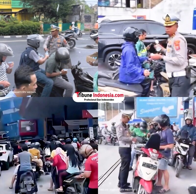 Satlantas Polrestabes Medan menunjukkan aksi humanis dan peduli terhadap masyarakat yang tengah antre bahan bakar minyak (BBM). Dalam kegiatan yang berlangsung di lokasi antrean BBM di SPBU Pertamina 142011166 Singapore Station 2, Jl H Adam Malik, No 5, Medan tersebut, personel Satlantas secara aktif membagikan minuman kepada warga yang sedang menunggu dalam kondisi cuaca panas.