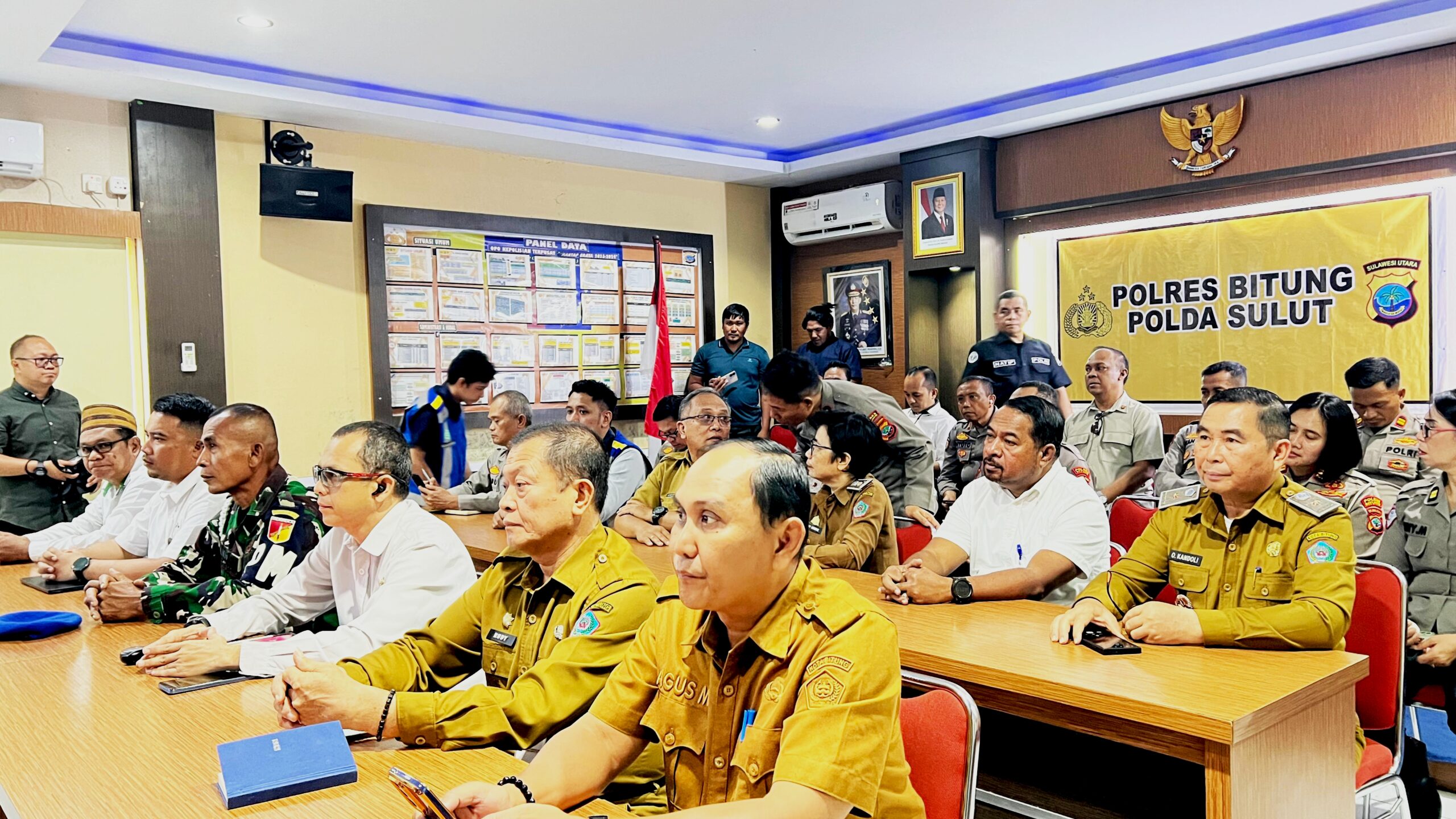Kegiatan strategis yang dimulai tepat pukul 10.00 WITA tersebut dihadiri oleh jajaran pimpinan daerah. Wali Kota Bitung, Hengky Honandar, SE, tampak hadir bersama Kapolres Bitung, AKBP Albert Zai, S.I.K., M.H., guna menyelaraskan persepsi pengamanan wilayah.