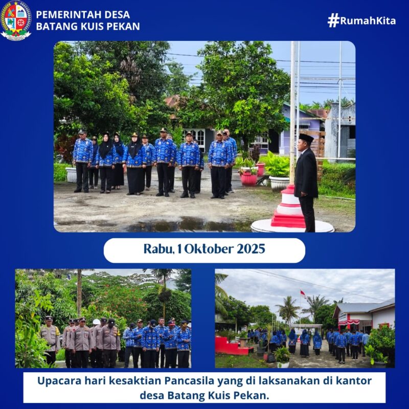 Batang Kuis I TribuneIndonesia.com-Untuk mengenang jasa para pahlawan yang gugur dalam peristiwa G30S/PKI, masyarakat Desa Batang Kuis menggelar upacara Hari Kesaktian Pancasila di pelataran Kantor Desa Batang Kuis, Rabu 1 Oktober 2025. Momentum bersejarah ini menjadi wujud penghormatan atas pengorbanan para Pahlawan Revolusi yang rela menyerahkan jiwa dan raga demi mempertahankan kedaulatan bangsa Indonesia.