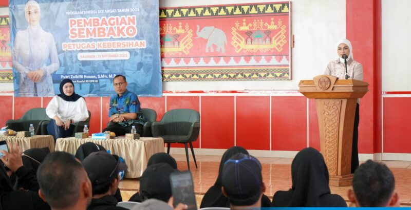 TRIBUNEINDONESIA.COM, Lampung Selatan – Wakil Ketua Komisi XII DPR RI, Putri Zulkifli Hasan, memberikan apresiasi kepada petugas kebersihan dengan menyerahkan ratusan paket sembako saat melakukan kunjungan kerja di Kabupaten Lampung Selatan, Jumat (26/9/2025).