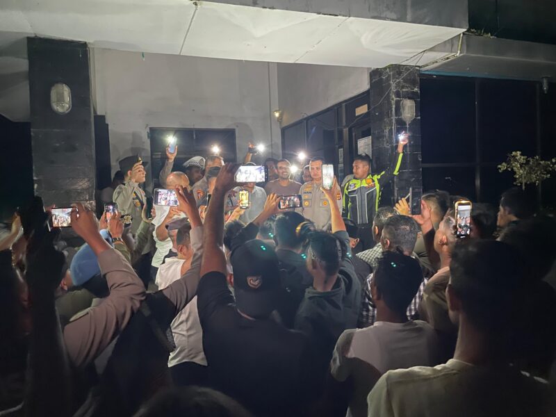 Polres Pidie Jaya melaksanakan pengamanan terhadap kedatangan masyarakat Kemukiman Bracan ke Kantor PLN ULP Meureudu guna menyampaikan tuntutan keadilan dalam penyaluran arus listrik di wilayah Kemukiman Bracan, Kecamatan Meureudu, Kabupaten Pidie Jaya, Senin malam 15 Desember 2025.