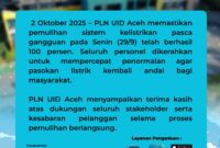 Banda Aceh/Tribuneindonesia.com PT PLN (Persero) berhasil memulihkan kembali 100 persen sistem kelistrikan Aceh pada Kamis (2/10) pukul 00.07 WIB yang sebelumnya terdampak gangguan di…