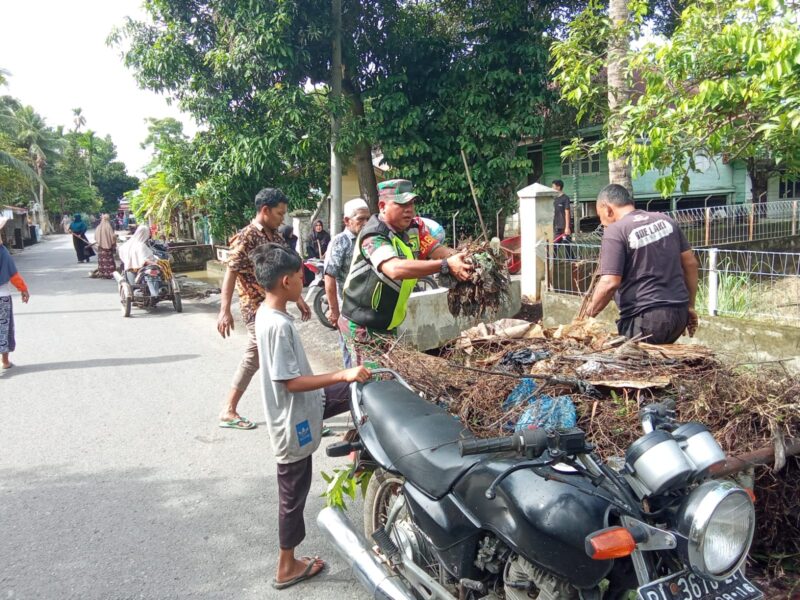 Sebagai bentuk kepedulian terhadap kebersihan lingkungan, Koptu Sefania Gulo, Babinsa Koramil 02/Samalanga Kodim 0111/Bireuen, melaksanakan kegiatan gotong royong bersama masyarakat dan perangkat desa di Desa Tanjungan Idem, Kecamatan Samalanga, Kabupaten Bireuen. Sabtu (30/08/2025).
