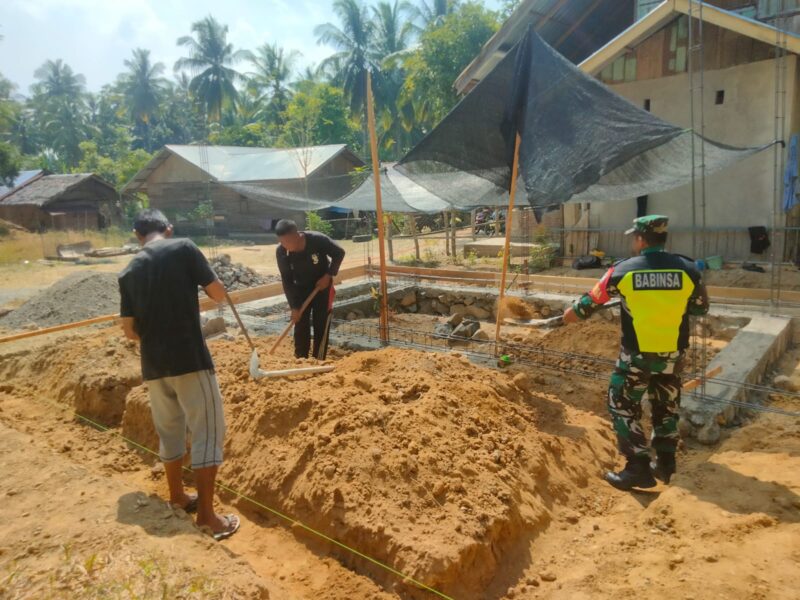 Dalam kegiatan tersebut, Babinsa bersama warga bekerja sama mengangkat material dan menata pondasi rumah. Kehadiran Babinsa tidak hanya memberikan bantuan tenaga, tetapi juga memotivasi warga agar semangat gotong royong tetap hidup di tengah masyarakat.