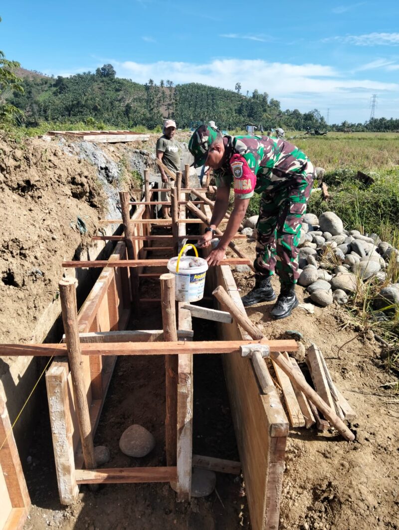Pembuatan saluran air tersebut bertujuan untuk memperlancar pengairan ke sawah warga sehingga hasil pertanian dapat lebih optimal. Kehadiran Babinsa dalam kegiatan gotong royong ini juga menjadi wujud nyata peran TNI dalam mendukung ketahanan pangan di wilayah.