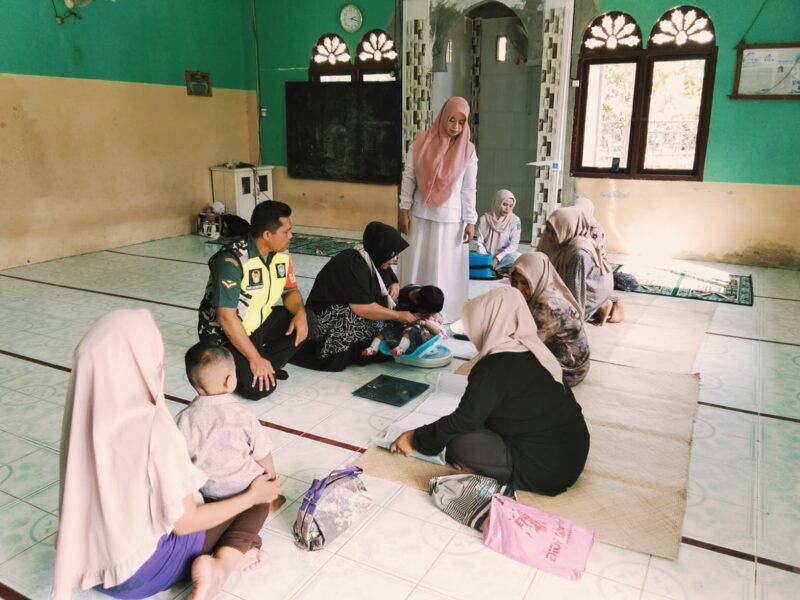 Bandar Baru- Serda Ismet Metni Siregar, Babinsa Koramil 11/Bandar Baru Kodim 0102/Pidie, turut serta mendampingi kegiatan Posyandu di wilayah binaannya desa Blang Glong,Kec.Bandar Baru,Kab.Pidie Jaya,Selasa, 8/7/25