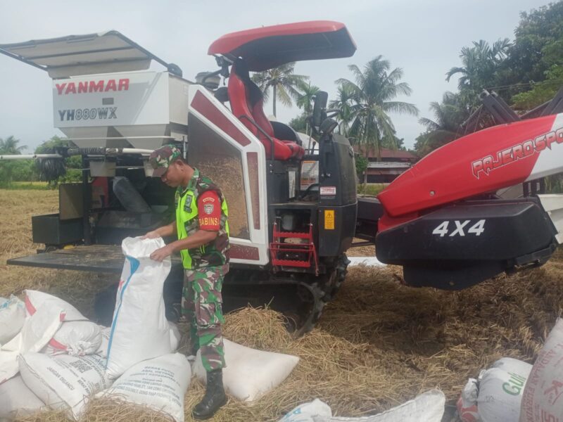 Dalam upaya mendukung ketahanan pangan nasional dan meningkatkan kesejahteraan petani di wilayah binaannya, Babinsa Koramil 11/Bandar Baru Kodim 0102/Pidie, Serka Ngadiran, melaksanakan kegiatan pendampingan panen padi di Desa Alue, Kecamatan Bandar Baru, Kabupaten Pidie Jaya.Rabu,6/8/25