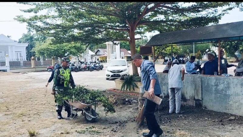 Babinsa Pos Ramil Peusangan Selatan Kodim 0111/Bireuen, Sertu Sugiyono, bersama masyarakat melaksanakan kegiatan gotong royong membersihkan lingkungan Meunasah di Desa Lueng Baro, Kecamatan Peusangan Selatan, Kabupaten Bireuen. Kamis (25/09/2025).