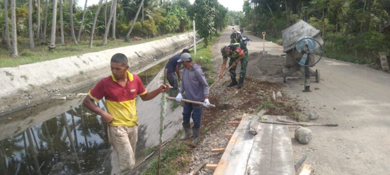Babinsa Posramil Kuta Blang, Koptu Abdul Haris melaksanakan kegiatan bakti membantu warga membuat saluran air di Desa Kulu Kuta, Kecamatan Kuta Blang, Kabupaten Bireuen. Jumat (19/09/2025).