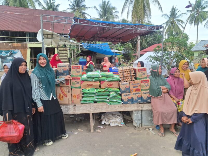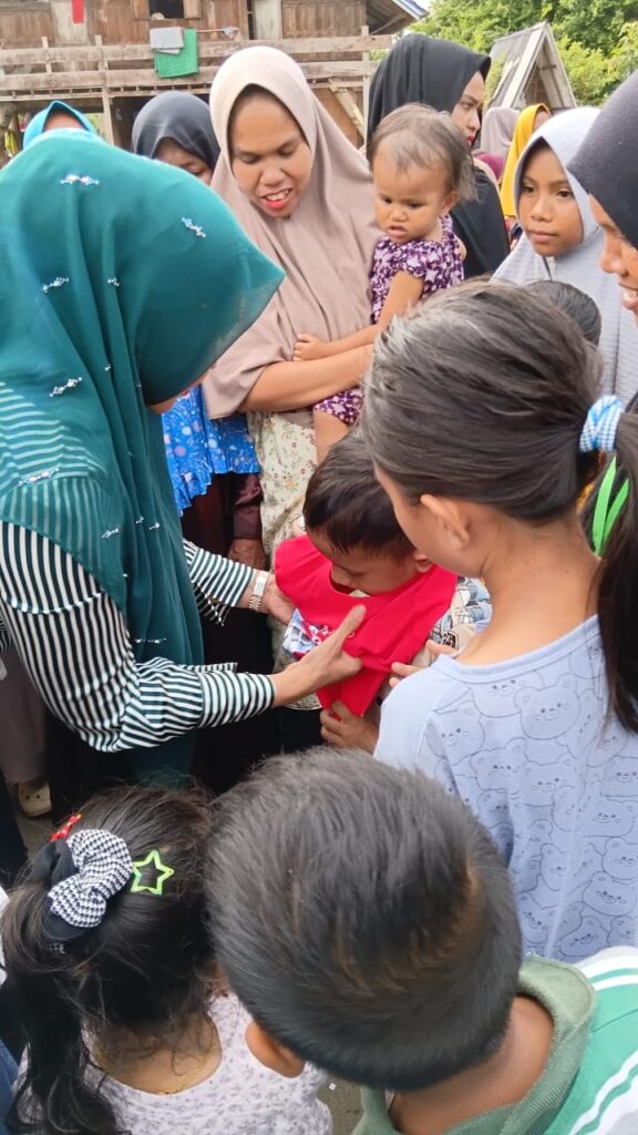 Saat Hj Faridah Adam istri H Ruslan Daud (HRD), Anggota Komisi V DPR RI Fraksi PKB, membagikan berbagai bantuan, mulai dari berbagai makanan kebutuhan pokok hingga baju baru.