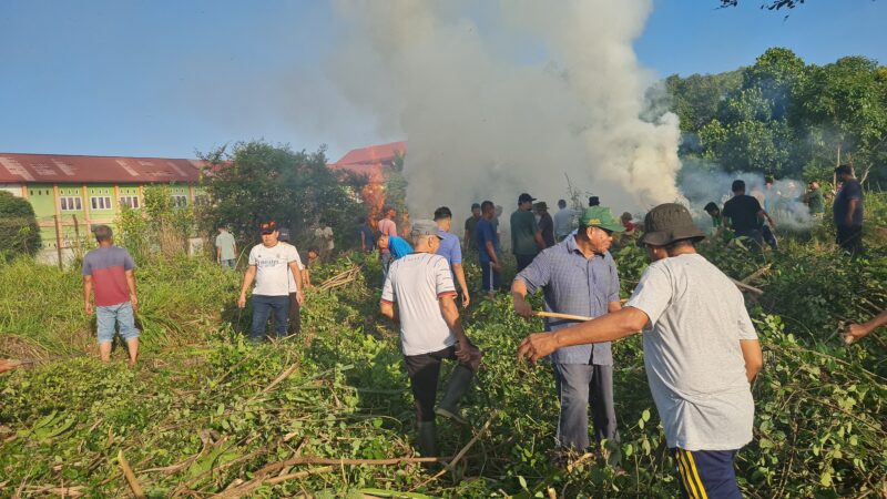 Seluruh warga yang hadir terlihat sangat kompak. Mereka membersihkan semak-semak dan rerumputan yang memenuhi kebun yang luasnya mencapai 2.000 meter itu. Semak-semak itu dibersihkan dan dibakar, sehingga lahan untuk pemakaman umum itu terlihat bersih dan teduh.