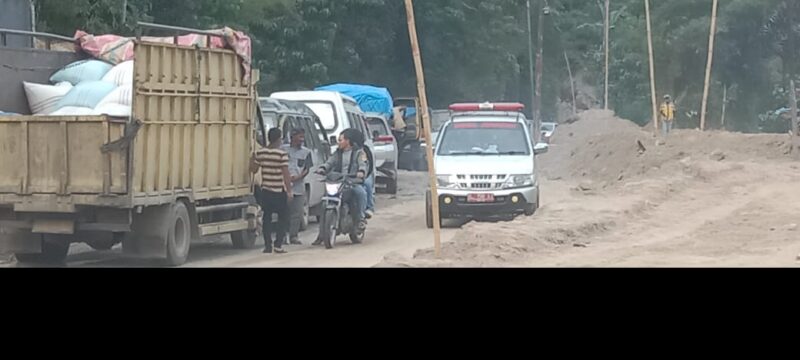 Pada saat ini jalan yang dilakukan buka tutup lokasinya antara jalan hutan melewati kampung tetumpun wilayah air jernih ketempat lokasi longsor yang sedang perbaikan atau dipenimbunan tanah agar kenderaan bisa melewati jalan darurat tersebut