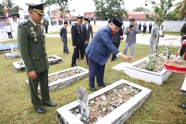 Bupati Aceh Tenggara H.M Salim Fakhry bersama Porkofimda ziarah ke Taman Makam Pahlawan (TMP) di Desa Lawe Sagu, Kecamatan Lawe Bulan, Senin 10 November 2025.