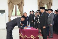 Wakil Bupati Pidie Alzaizi resmi mengukuhkan 55 Anggota Pasukan Pengibar Bendera Pusaka (Paskibraka) Kabupaten Pidie Tahun 2025. Jumat, (15/08/2025) di Aula Pidie Convention Center…