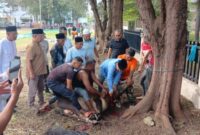 Pidie|Tribuneindonesia.com Wakil Bupati Pidie, Al Zaizi Umar, menyembelih secara simbolis hewan qurban di halaman Kantor Dinas Syariat Islam (DSI) Pidie pada hari raya Idul…
