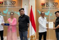 JAKARTA | Tribuneindonesia.com Badan Nasional Sertifikasi Profesi (BNSP) secara resmi menyerahkan sertifikat lisensi LSP dan plakat BNSP kepada Lembaga Sertifikasi Profesi (LSP) Binatu Indonesia…