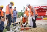 MEUREUDU/Tribuneindonesia.com Bupati Pidie Jaya H. Sibral Malasyi MA, S. Sos, ME, melakukan peletakan batu pertama pembangunan gedung Sentra Pelayanan Kepolisian Terpadu (SPKT) Polres Pidie…