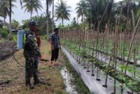 Bireuen/Tribuneindonesia.com Babinsa Koramil 10/Pandrah Kodim 0111/Bireuen, Sertu Heri Siswanto, membantu warga binaan dalam penyemprotan pestisida pada tanaman tomat yang terserang penyakit di Desa Utheun…