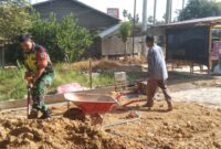 Bireuen/Tribuneindonesia.com Babinsa Posramil Kuta Blang Kodim 0111/Bireuen, Koptu Abdul Haris, turut membantu warga desa binaannya dalam kegiatan penimbunan emperan perkarangan rumah di Desa Tingkeum…