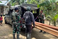 Bireuen, Aceh/Tribuneindonesia.com Anggota Satgas TMMD Ke-127 Kodim 0111/Bireuen melaksanakan kegiatan penurunan material rumah di Desa Jeumpa Sikureng sebagai bagian dari sasaran fisik program TNI…