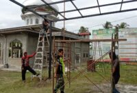 Bireuen/Tribuneindonesia.com Babinsa Koramil 06/Peusangan, Kodim 0111/Bireuen, Sertu Aria Nosra melaksanakan karya bakti membantu warga dalam pemasangan tenda untuk persiapan acara peringatan Maulid Nabi Muhammad…