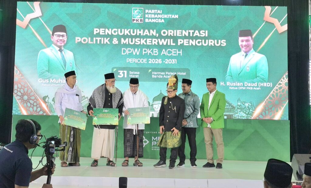 Gus Muhaimin juga mengukuhkan Pengurus DPW PKB Aceh periode 2026-2031. Sekaligus melaksanakan orientasi politik serta Musyawarah wilayah (Muskerwil) yang berfokus pada penguatan program pemberdayaan masyarakat dan langkah strategis PKB ke depan. (*)