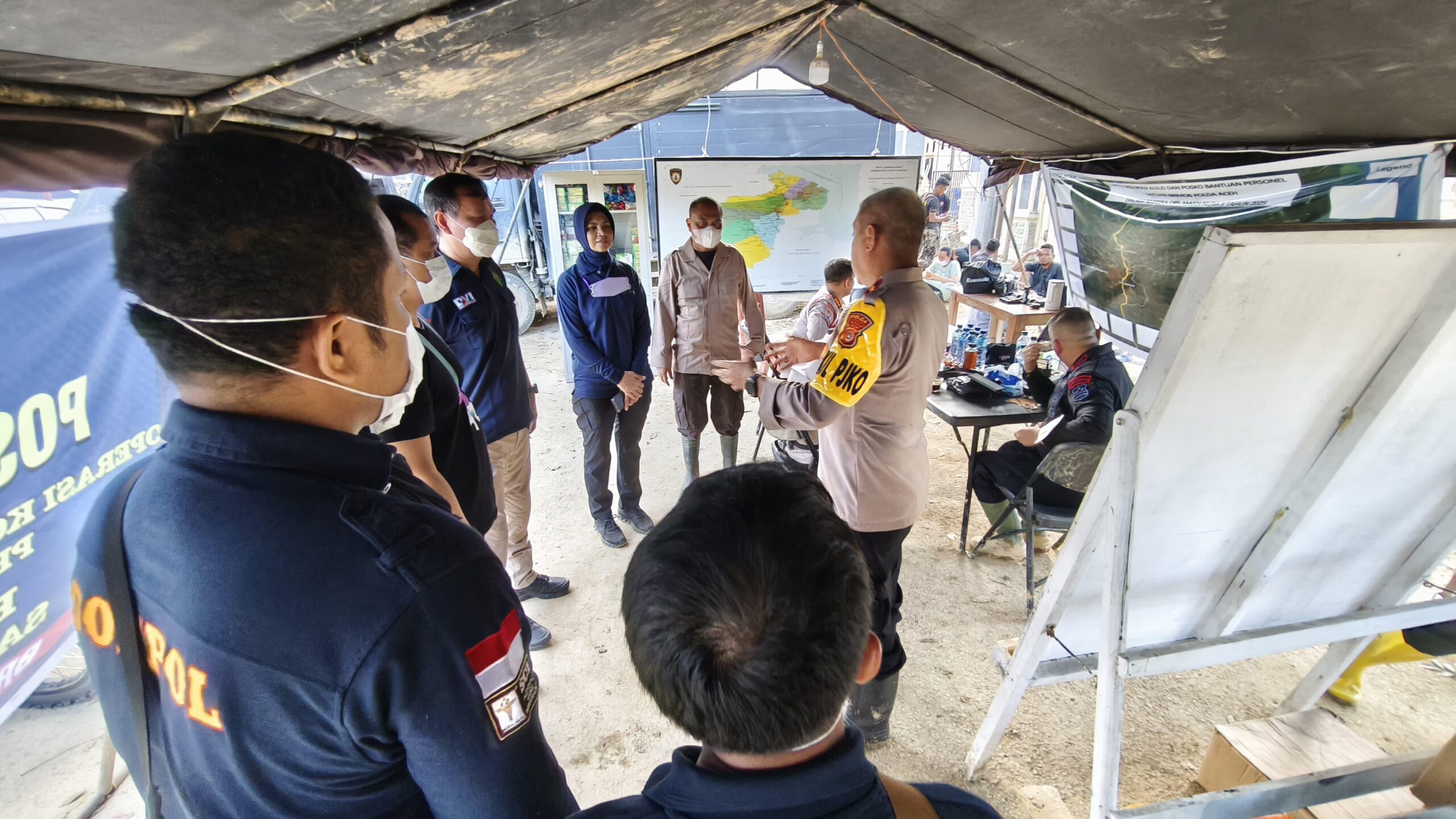 Mereka tiba di Pos Bencana depan Mako Polres setempat pukul 17.00 WIB, setelah menempuh perjalanan penuh hambatan akibat jalan terputus dan wilayah blank spot.