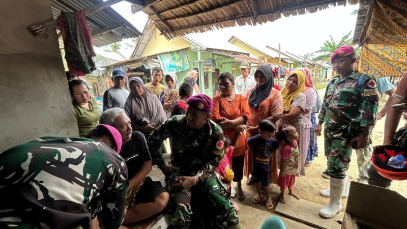 DI SERUWAY ACEH TAMIANG, MARINIR LAKUKAN PENGOBATAN DAN BANTUAN DARI RUMAH KE RUMAH