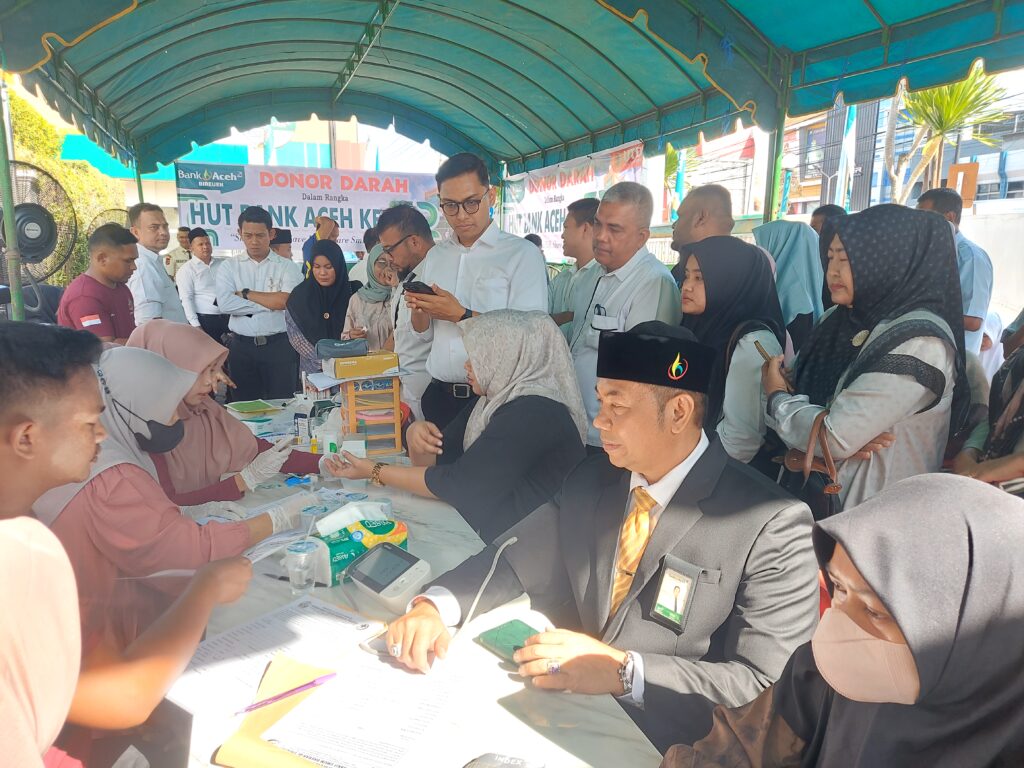 Suasana kegiatan aksi kemanusiaan donor darah rangkaian kegiatan HUT Ke-52 Bank Aceh Syariah.