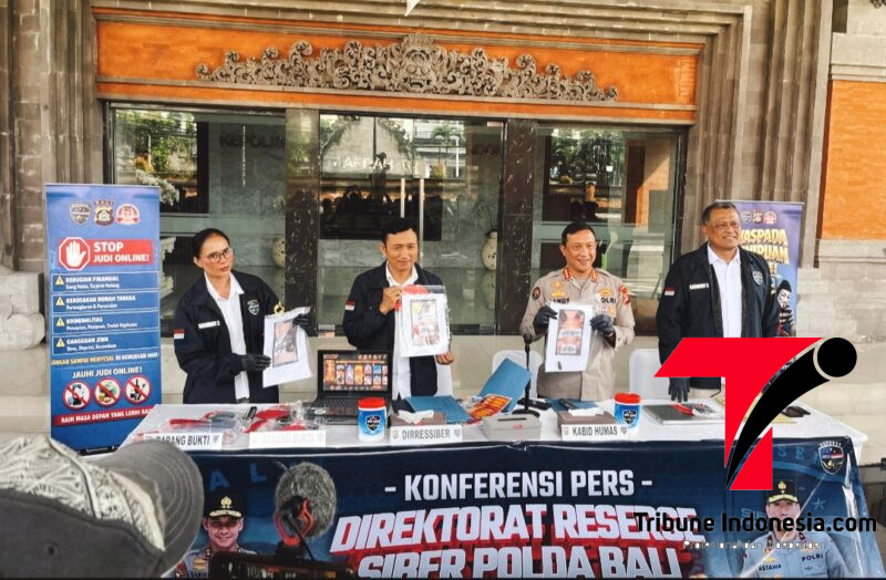 Denpasar Tribuneindoneisa.con Dirressiber Polda Bali Kombes Pol Aszhari Kurniawan S.H., S.I.K., M.Si., bersama Kabid Humas Kombes Pol Ariasandy S.I.K., didampingi para Kasubdit Siber, gelar konfrensi Pers pada rabu 29 april 2026, bertempat di loby Mapolda.