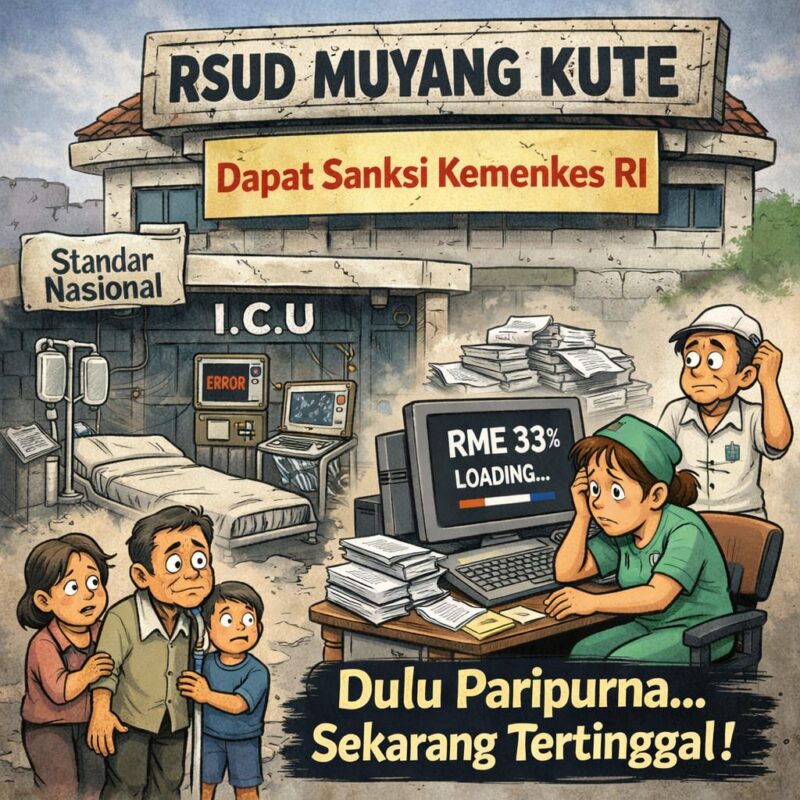 Tak berhenti di situ, RSUD Muyang Kute kembali mendapat sanksi terkait implementasi Rekam Medis Elektronik (RME). Berdasarkan surat resmi Kementerian Kesehatan Republik Indonesia yang ditandatangani Direktorat Jenderal Pelayanan Kesehatan tertanggal 11 Maret 2026, capaian rumah sakit tersebut mengalami penurunan dari status paripurna menjadi utama.