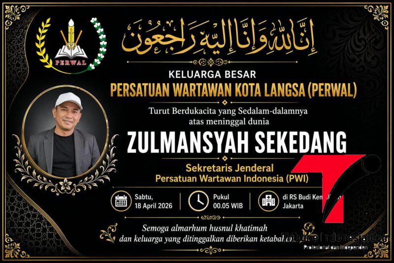 Langsa | Tribune Indonesia.com — Kabar duka menyelimuti dunia pers nasional. Sekretaris Jenderal Persatuan Wartawan Indonesia (PWI) Pusat, Zulmansyah Sekedang, meninggal dunia pada Sabtu (18/4/2026) pukul 00.05 WIB di RS Budi Kemuliaan, Jakarta, akibat serangan jantung.