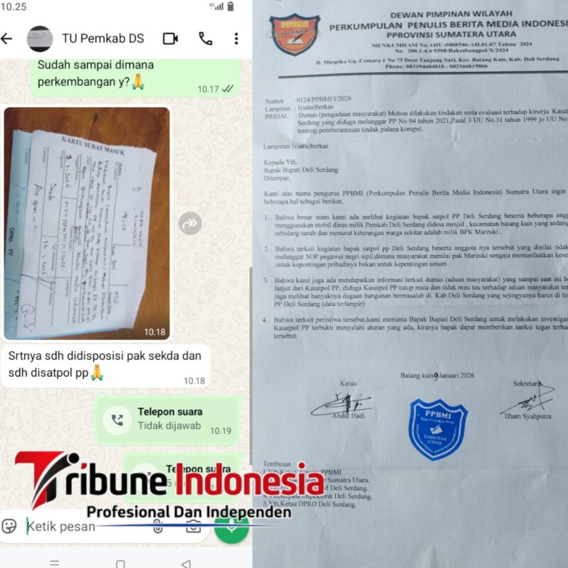 Surat Dumas tersebut diketahui telah dikirimkan secara resmi pada 12 Januari 2026, dengan substansi permintaan agar Bupati Deli Serdang melakukan evaluasi dan penindakan atas dugaan pelanggaran kinerja yang dilakukan oleh Kasatpol PP Deli Serdang.