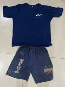1 buah celana pendek, 1 buah kaos warna biru Kedua pakaian dikenakan pelaku saat menjalankan aksinya dan menjadi bukti kuat dalam proses penyidikan.