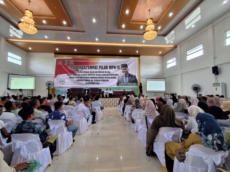 Para tokoh masyarakat, pemuda dan tokoh perempuan di Kabupaten Bireuen, Aceh, mengikuti sosialisasi empat pilar kebangsaan yang dilaksanakan oleh Anggota Komisi V DPR RI, H Ruslan M Daud (HRD), di Rumah Aspirasi HRD, Bireuen, Senin (8/12/2025).