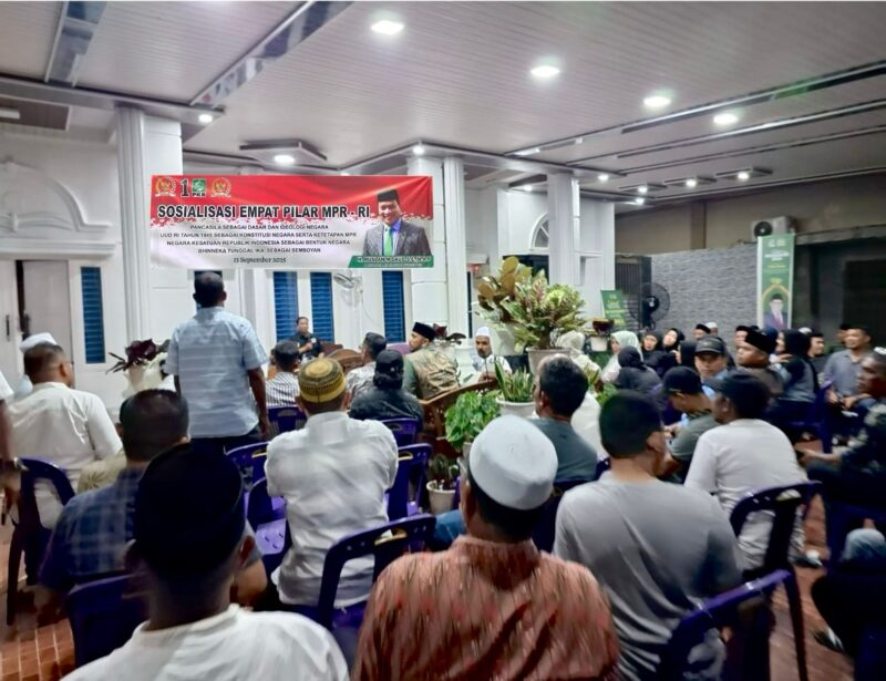 BIREUEN – Para tokoh masyarakat, pemuda dan tokoh perempuan di Bireuen, Aceh, mengikuti sosialisasi empat pilar kebangsaan yang dilaksanakan oleh Anggota Komisi V DPR RI, H Ruslan M Daud (HRD), di Rumah Aspirasi HRD, Bireuen, Sabtu, 13 September 2025.