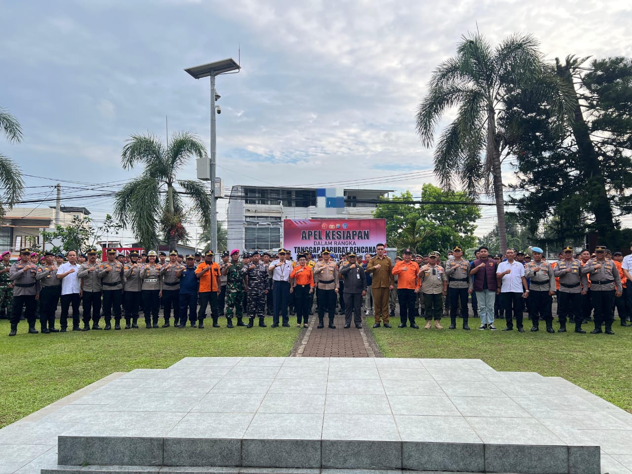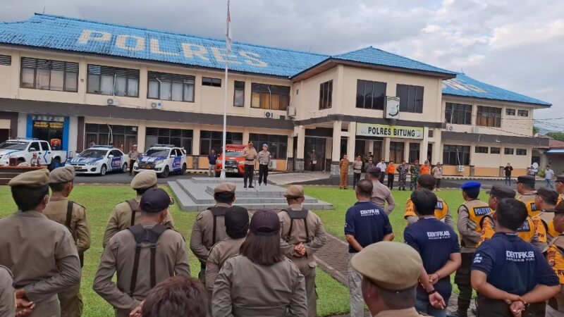 Jajaran Polres Bitung bersama Forum Koordinasi Pimpinan Daerah (Forkopimda) menggelar Apel Kesiapsiagaan Tanggap Darurat, Rabu (5/11/25).