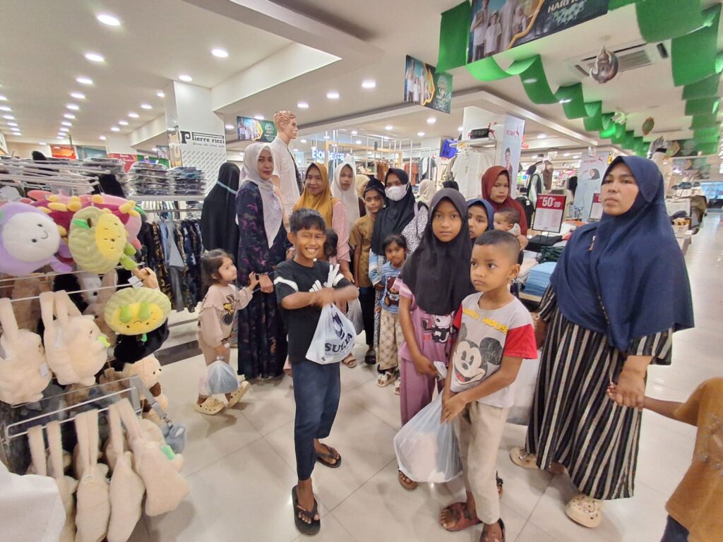 Para korban banjir dan tanah longsor yang kehilangan rumah tersebut, diajak berbelanja kebutuhan pakaian Lebaran di Suzuya Mall yang berada di pusat Kota Bireuen.