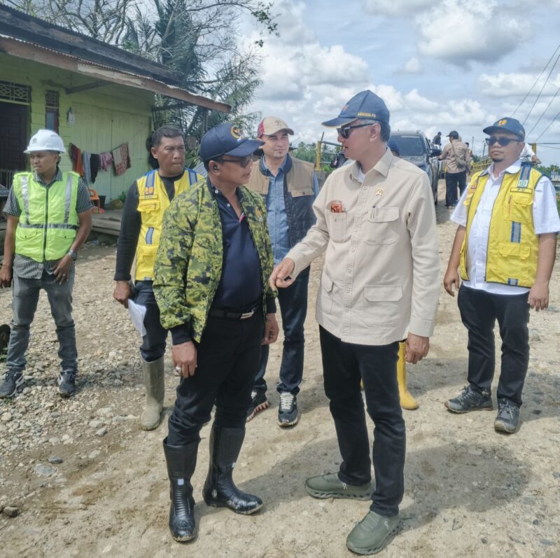Keterangan Foto: HRD berbincang serius dengan Menteri Pekerjaan Umum, Dody Hanggodo pada saat kunjungan ke Langkahan Aceh Utara,