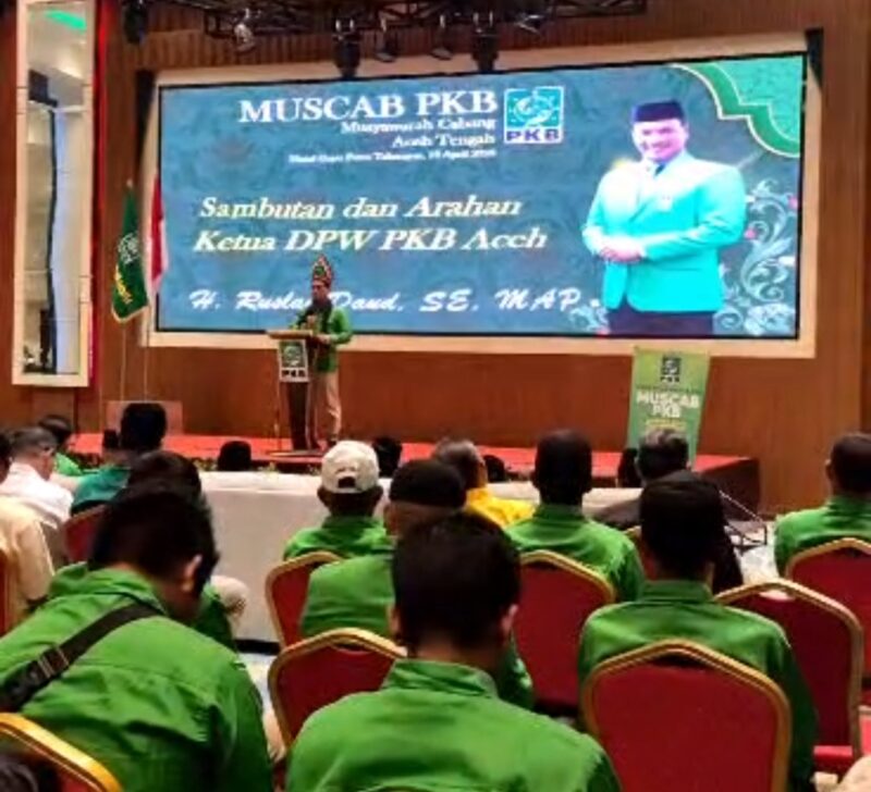 Teks Foto : Ketua DPW PKB Aceh, H Ruslan M Daud (HRD), membuka Muscab PKB Aceh Tengah di Hotel Gayo Petro Parkside, Minggu (12/04/2026). FOTO/FERIZAL HASAN