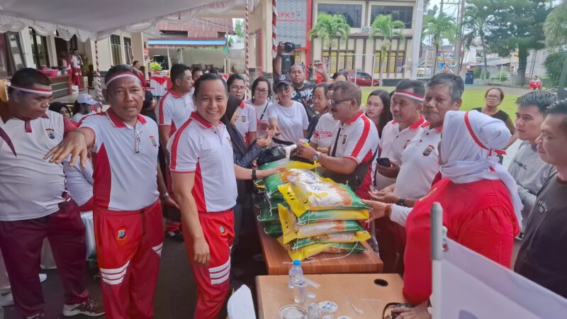 Memperingati HUT Kemerdekaan RI ke-80, Polres Bitung menggelar Gerakan Pangan Murah (GPM) bekerja sama dengan Perum Bulog SulutGo dan Perumda Pasar. Kegiatan ini digelar di halaman Mako Polres Bitung pada Jumat (8/08/2025) pagi, menyasar masyarakat yang membutuhkan bahan pokok terjangkau.