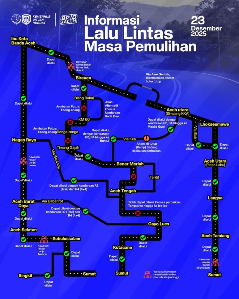 Informasi Jalan Lintas Bireuen – Bener Meriah – Takemgon – Gayo LuesSelasa, 23 Desember 2025 - 04:15