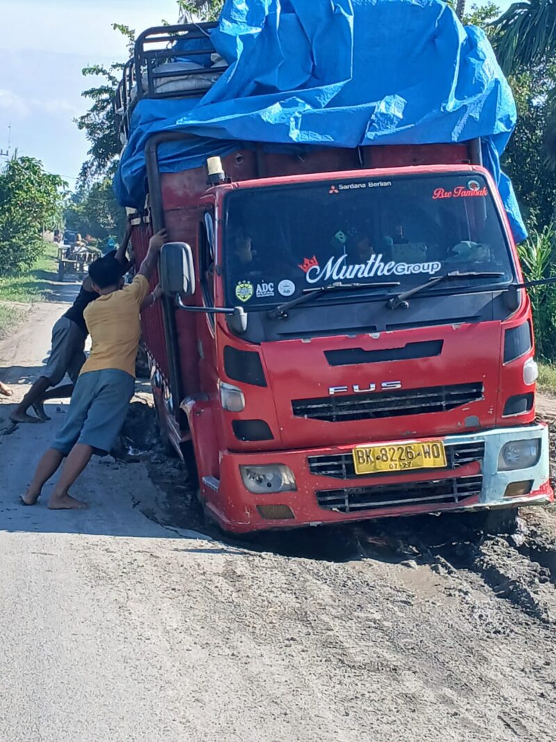 BATANG KUIS | TribuneIndonesia.com – Jalan utama Desa Mesjid, Kecamatan Batang Kuis, Kabupaten Deli Serdang, rusak parah akibat sering dilalui truk bermuatan melebihi kapasitas. Kondisi ini kian meresahkan warga karena membahayakan keselamatan pengguna jalan.