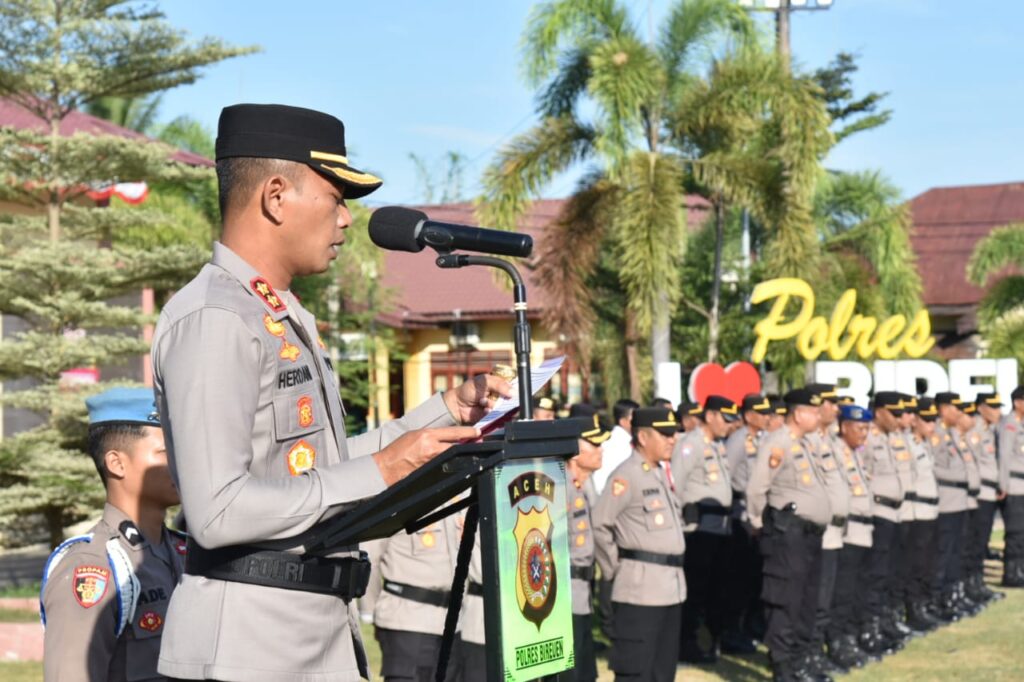Upacara tersebut dipimpin langsung oleh Kapolres Bireuen AKBP Tuschad Cipta Herdani, S.I.K., M.Med., Kom., turut dihadiri Waka Polres, Pju, Perwira, Kapolsek, Kapolsubsektor, Personil Jajaran, PNS Polri dan Bhayangkari