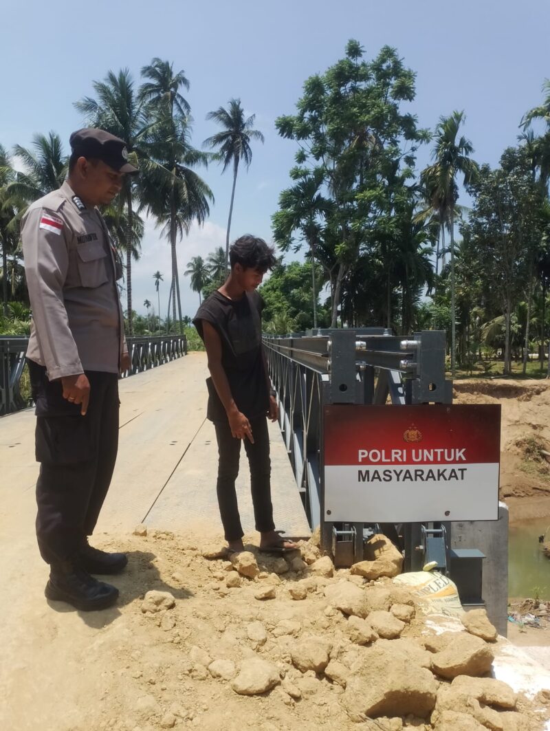 “Jembatan Bailey ini merupakan bantuan dari Bapak Kapolri, guna membantu akses masyarakat antar desa dapat terhubung kembali, pasca dilanda banjir, sebelumnya akses masyarakat antar desa dilalui melalui jembatan beton, namun karena diterjang banjir, jembatan tersebut hancur” terang Kasi Humas
