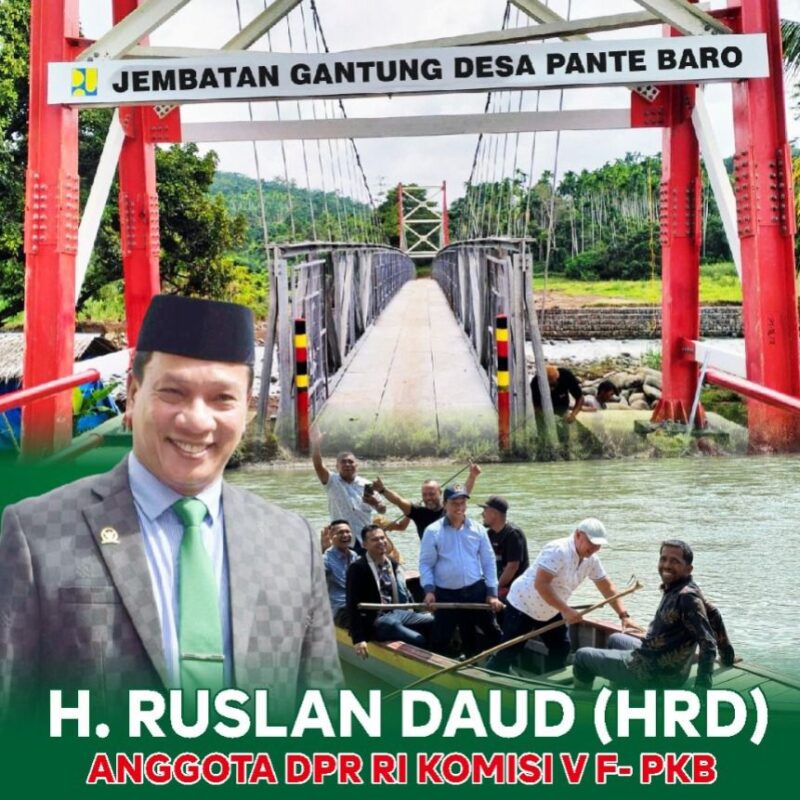 Jembatan gantung tersebut merupakan aspirasi Anggota Komisi V DPR RI Fraksi Partai Kebangkitan Bangsa (F-PKB), H Ruslan Daud (HRD).