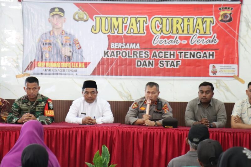 Kapolres Aceh Tengah AKBP Muhamad Taufiq, S.I.K., M.H., diwakili Wakapolres Kompol Samsir, S.H., hadir langsung untuk mendengarkan keluhan, masukan, sekaligus menyerap aspirasi masyarakat.