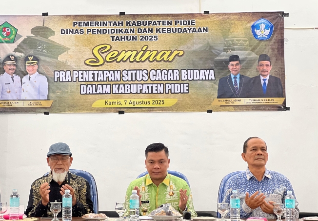 Sigli-Kepala Dinas Pendidikan dan Kebudayaan (Disdikbud) Kabupaten Pidie, melalui kepemimpinan yang visioner dan berkomitmen tinggi, mendapat apresiasi dalam pelaksanaan Pra Seminar Penetapan Situs Cagar Budaya yang berlangsung di Aula Disdikbud Kabupaten Pidie, Kamis,7/8/25).